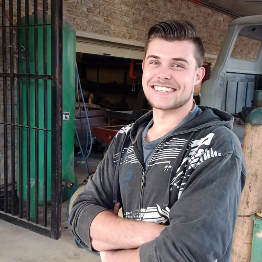 Johan Mienie, fabricator, suspension, and sheet metal work