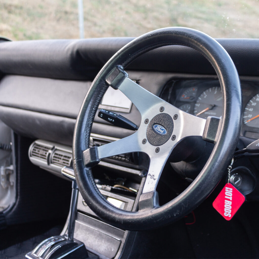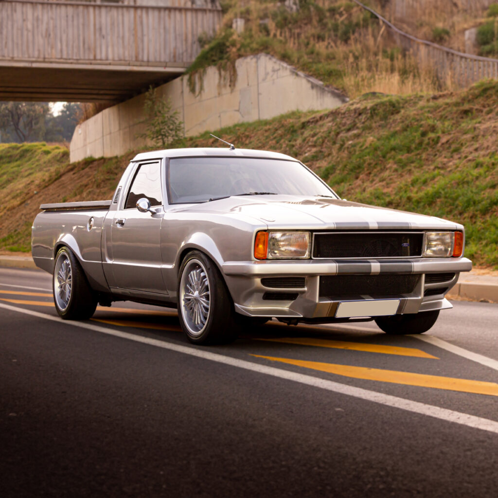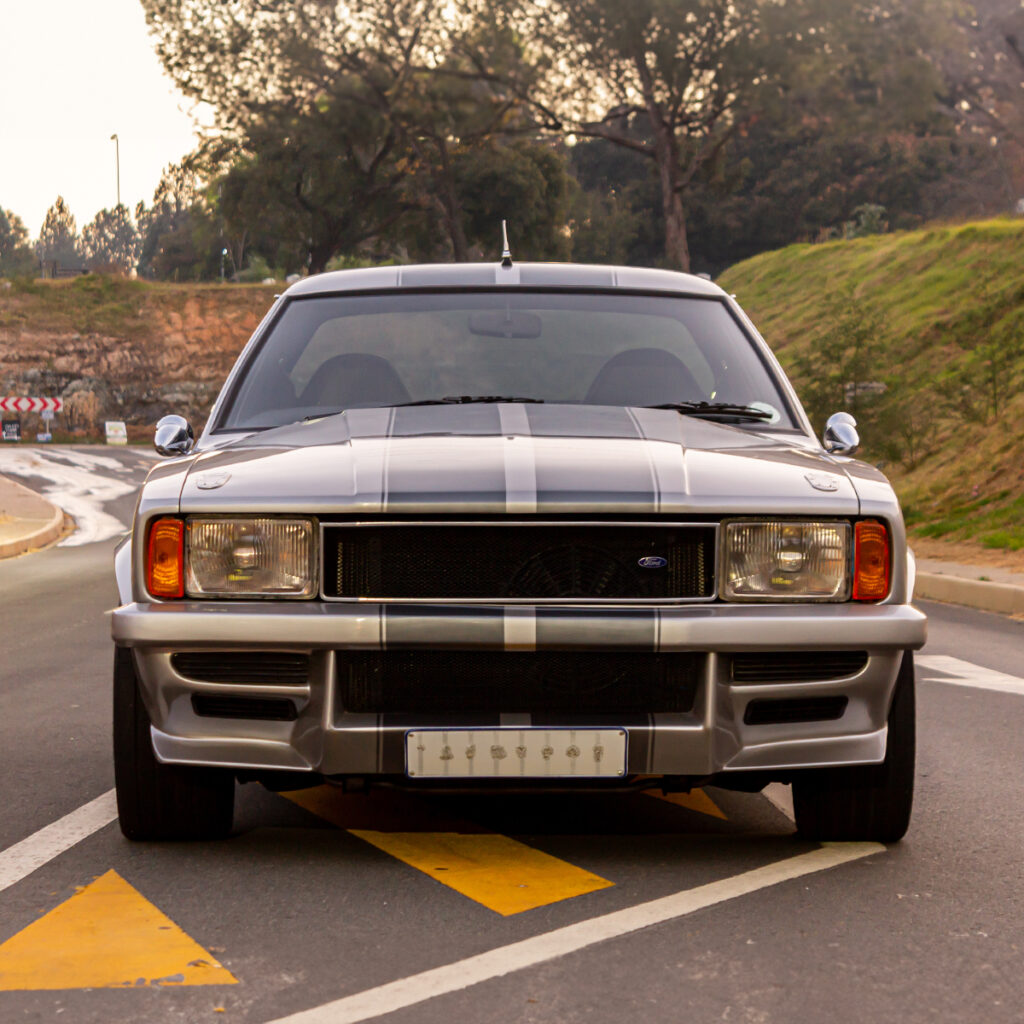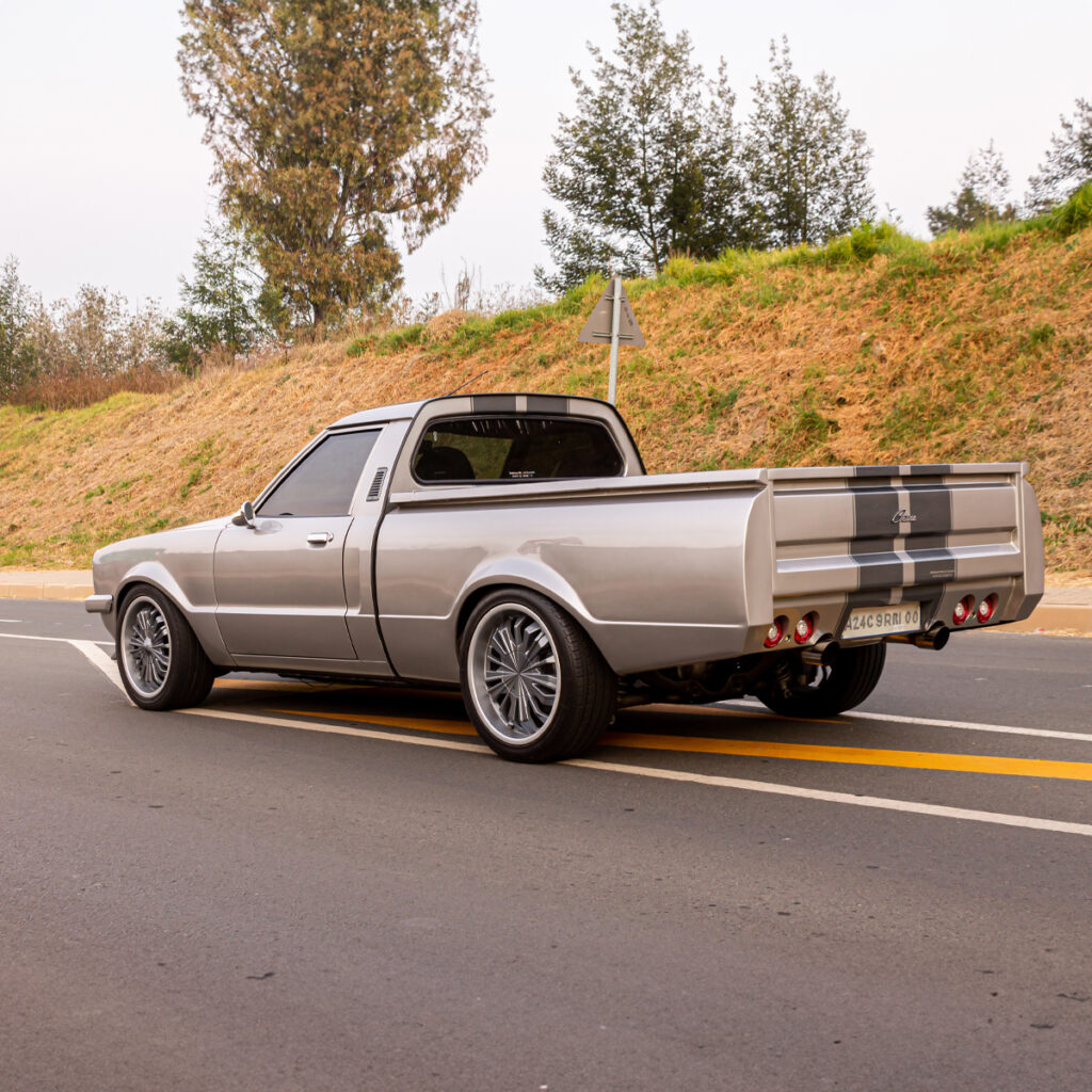A Labor of Love: The transformation wasn’t just under the hood. Willie and his team at Steelroad Rods & Customs poured their souls into every inch of the Cortina’s bodywork. Fender flares, front spoilers, and bonnet scoops were meticulously fabricated, while a custom Sikkens-based silver paint job with a hint of red pearl brought the bakkie to life.